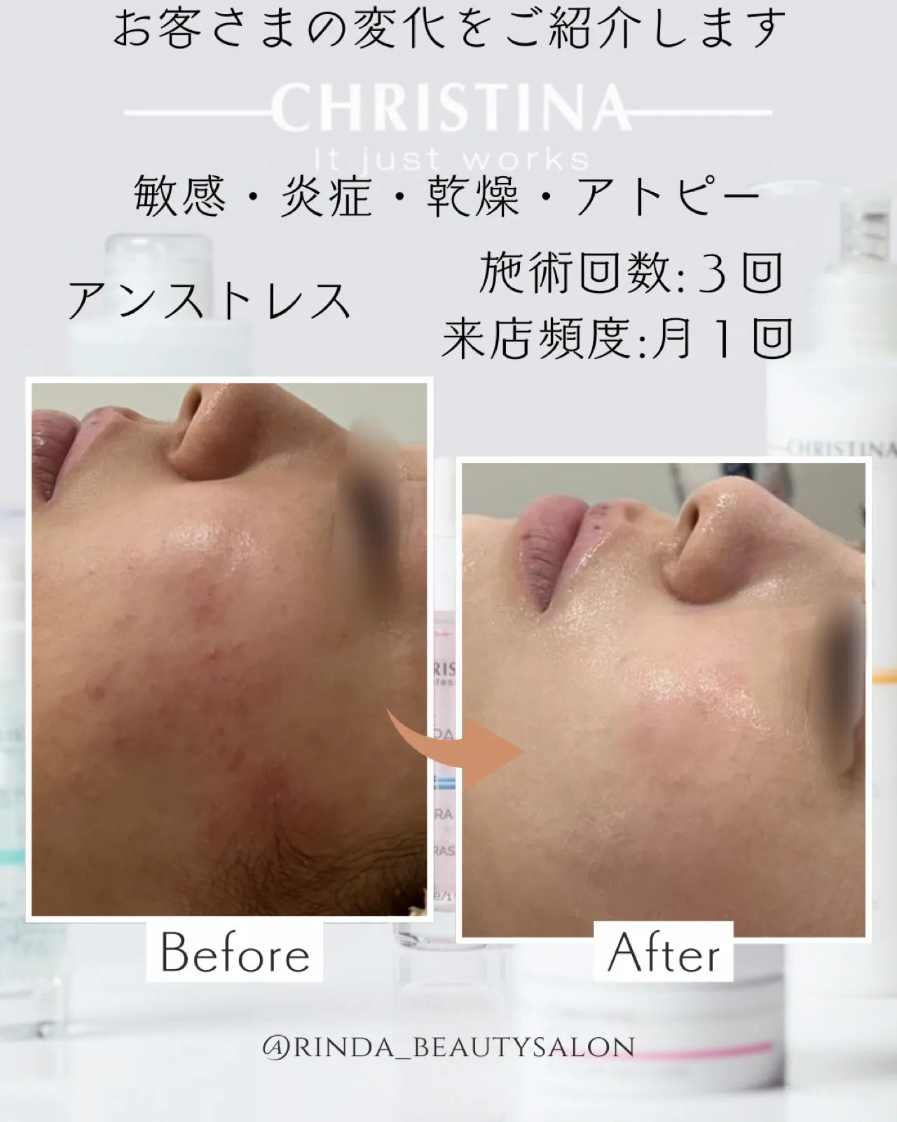 最短3ヶ月の肌質改善は敏感、乾燥、赤み炎症、赤ら顔、皮めくれでお悩みの方はクリスティーナで改善!兵庫県(尼崎エステ)Rinda Beauty Salonリンダビューティサロン