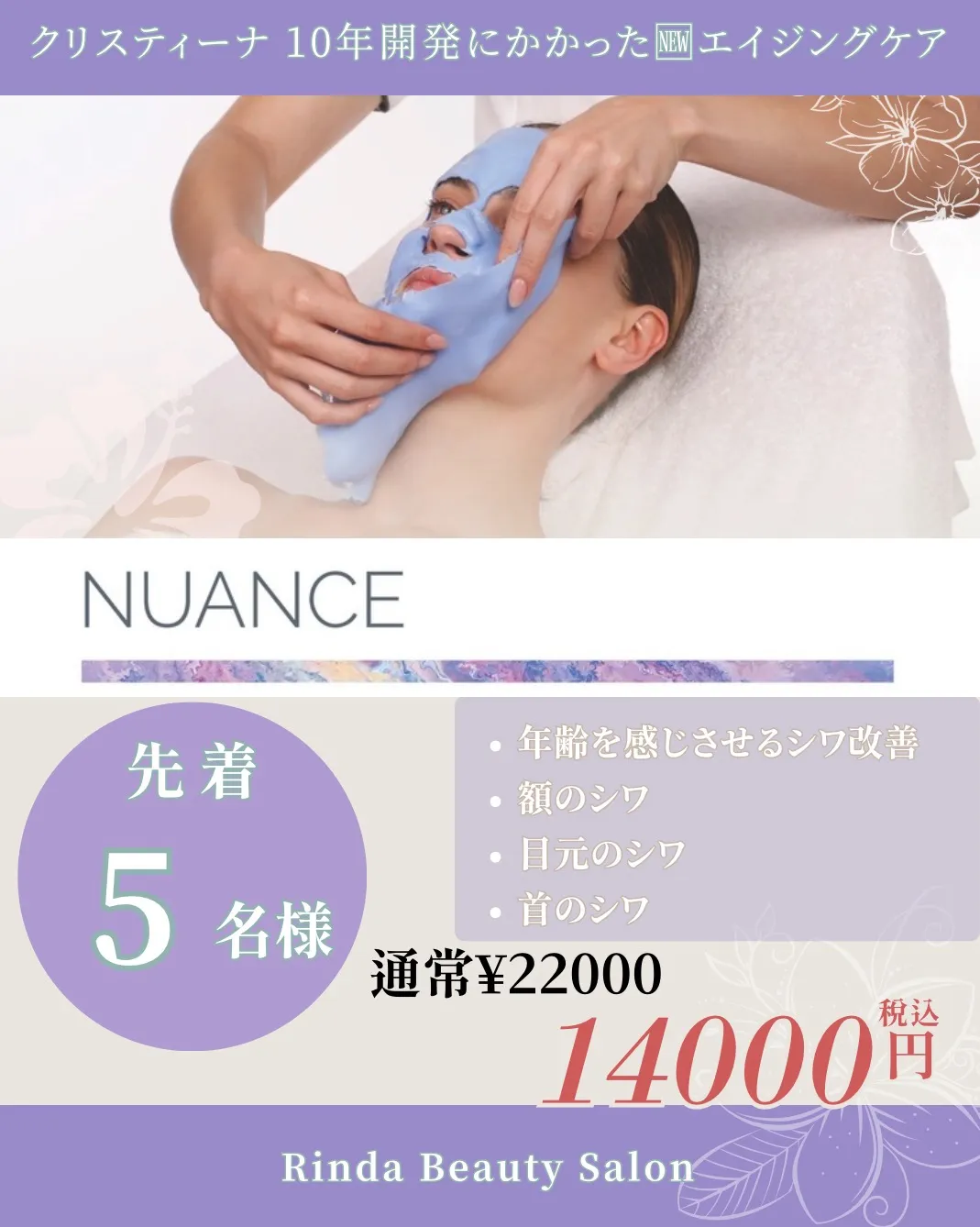 年齢が出やすい首元、額、目元など、深いシワを治したい、そんな方にオススメ!クリスティーナが10年開発にかかった若返りアンチエイジングライン"ニュアンス"