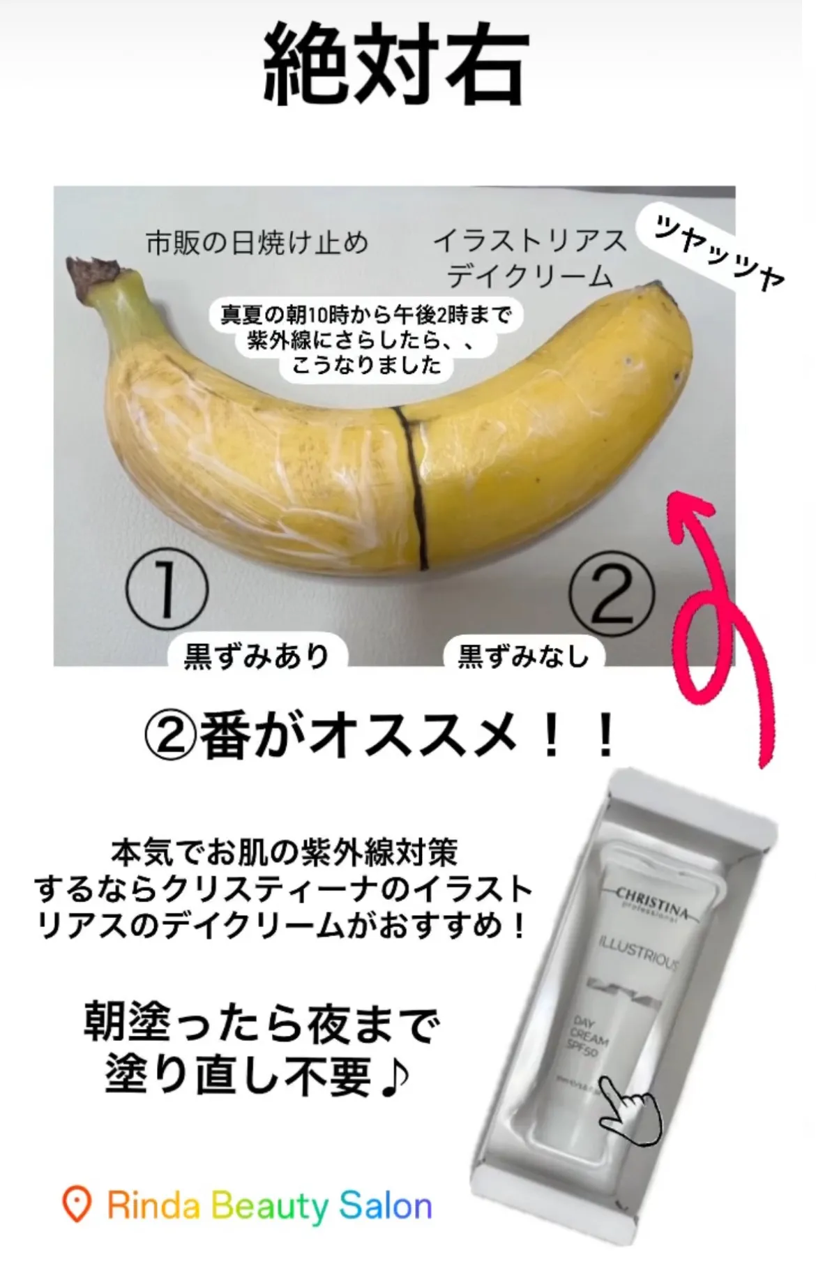 日焼け止めで化粧くずれにお悩みの方に効果的!クリームタイプの日焼け止めで朝塗れば夜まで塗り直し不要!日焼けしたくない方へ!兵庫県(尼崎エステ)Rinda Beauty Salonリンダビューティーサロン