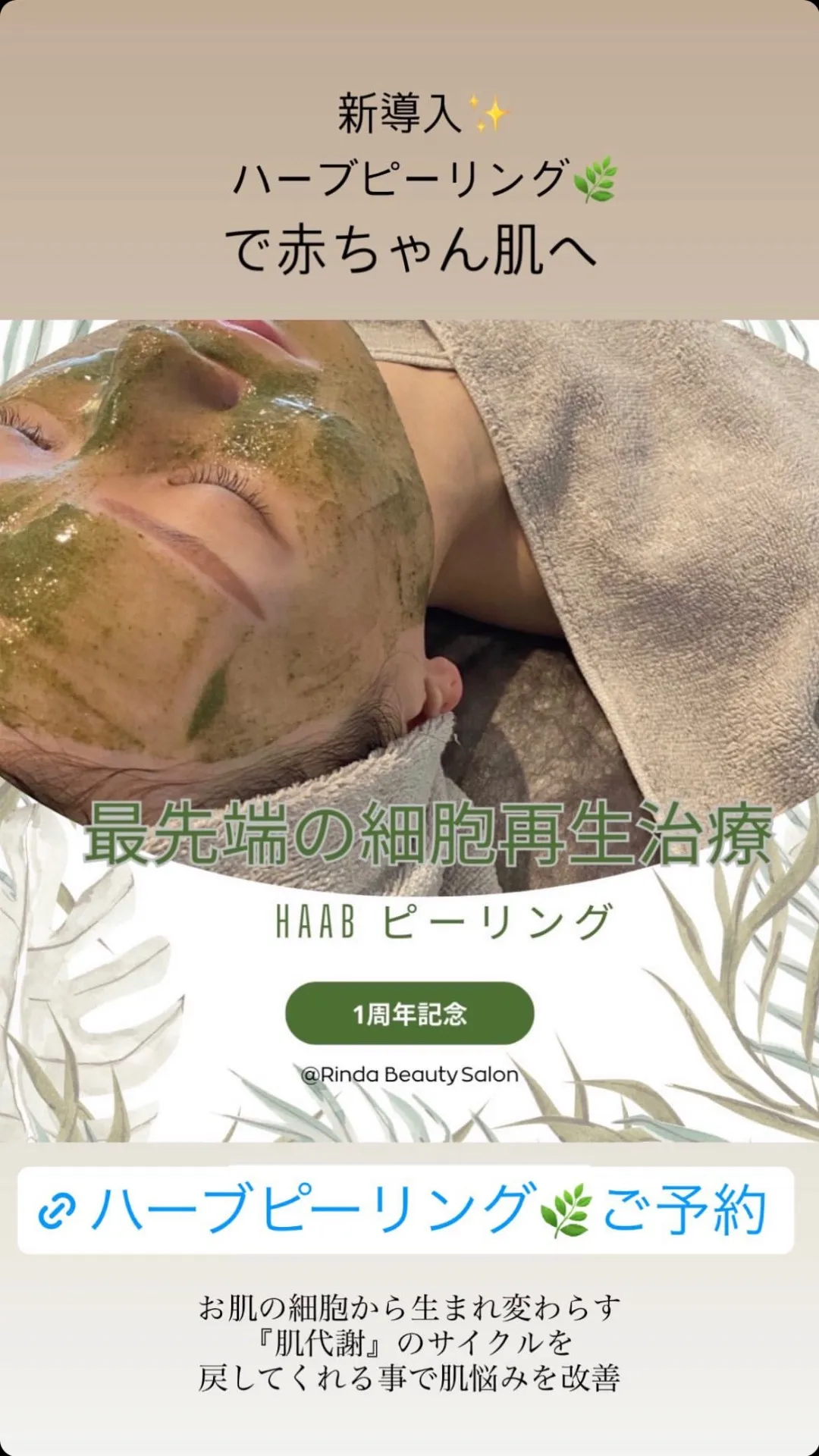クリニック提携しているハーブピーリングでシミや毛穴トラブル、ニキビ跡、色素沈着などの肌トラブルを肌質改善し、たまご肌を目指せます♪(兵頭)尼崎エステRinda Beauty Salonリンダビューティーサロン