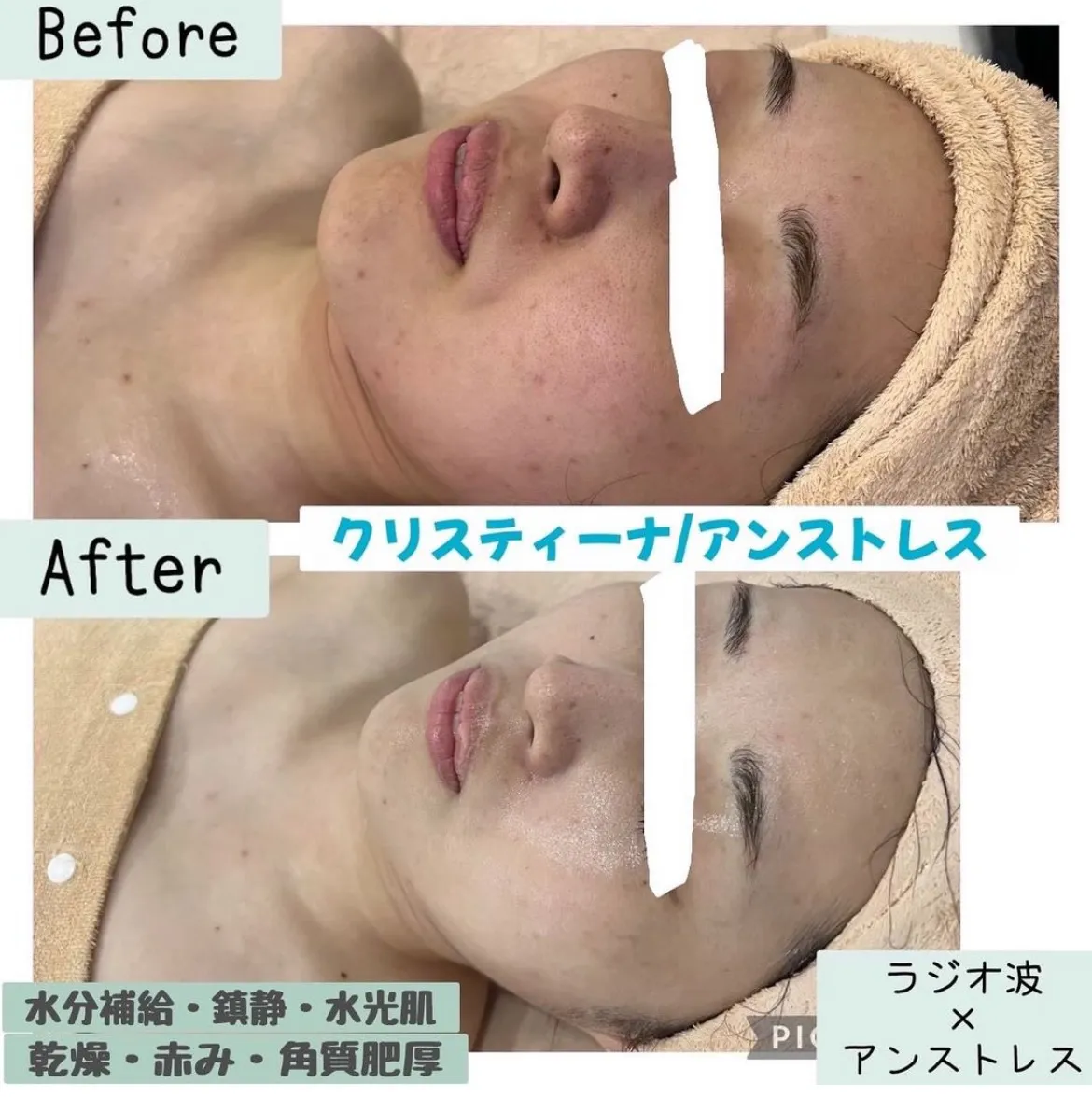 水分ロスが起こっているお肌を保護し、水分量を整えてくれるので、施術後はツヤ肌、もちもち、水光肌へ✨✨