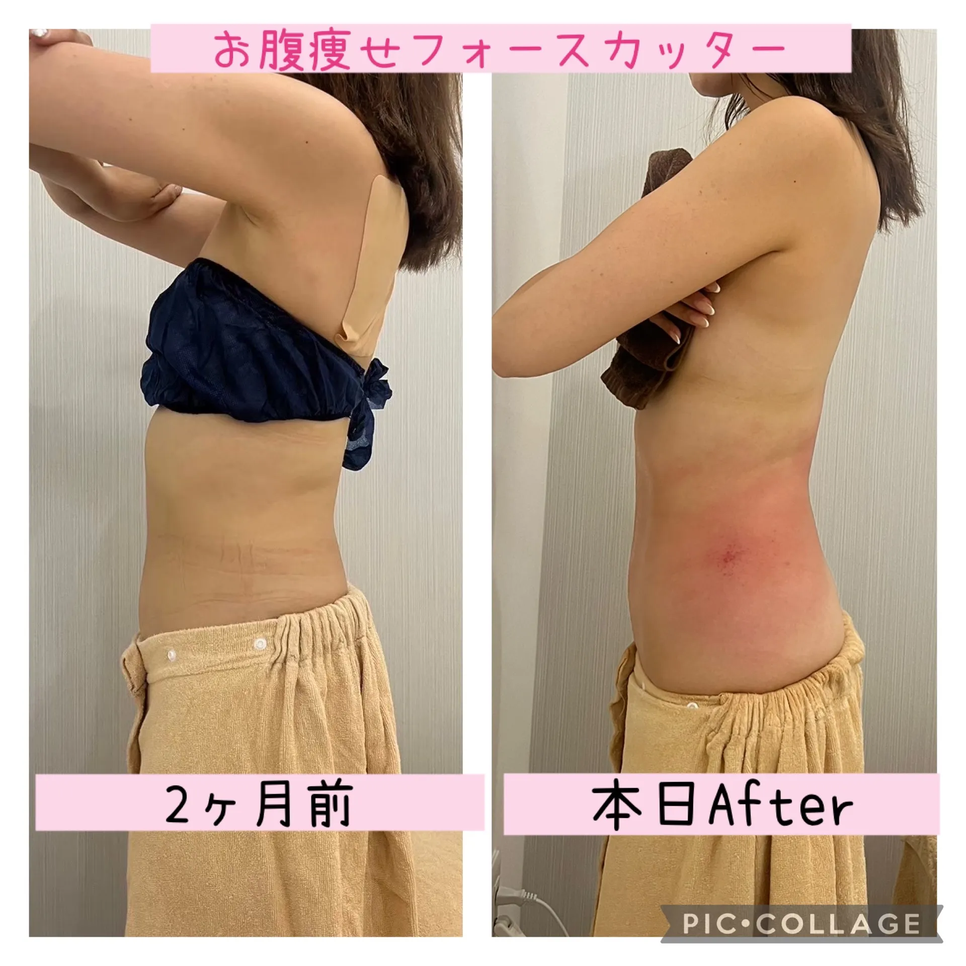 腰や下っ腹に付きやすくなったとの事で自分ではなかなか落ちにくい脂肪にお悩みで月2回施術しにご来店下さってます✨