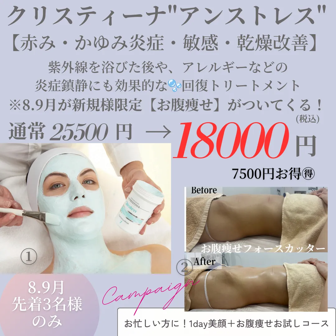 こんにちは。リンダビューティーサロンです^^ 紫外線・冷房・汗による赤み・乾燥・ざらつき…。 夏はお肌も体もストレスを受けやすい季節です。 そこで尼崎エステ当サロンから、夏限定の特別キャンペー…